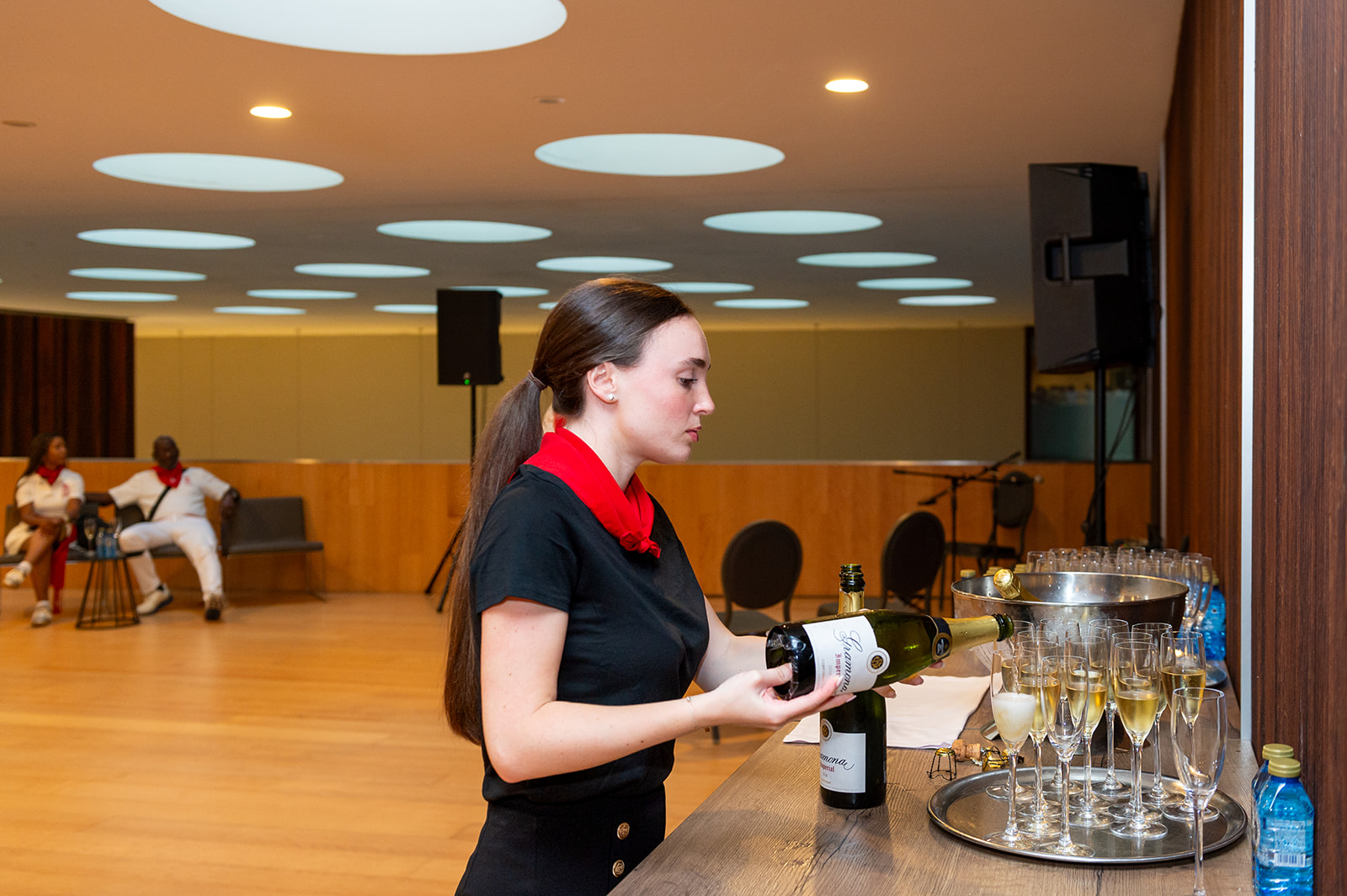 Each night of the festival, we host a dinner where we dine as a group–a Cuadrilla–like the locals do in the streets. Our Cuadrilla is held inside the beautiful Baluarte Arts Centre, with free flowing wine and delicious meal prepared by a local chef. Afterwards, we join Pamplona VIPs for a cocktail on the roof of the Baluarte and watch Pamplona’s famous fireworks.*